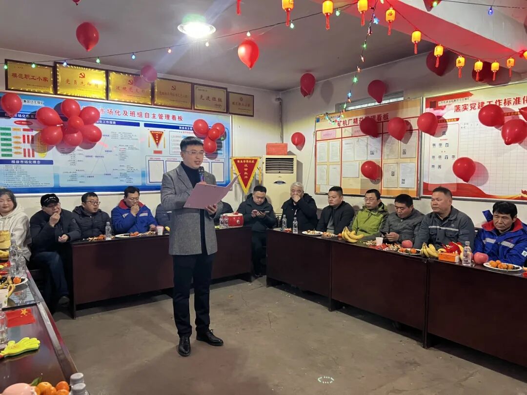 公司党委委员、副总经理侯进京,副总经理渠怀锋出席团拜会,与济宁事业部全体职工欢聚一堂,共话美好祝福。侯进京在致辞中向济宁事业部职工传达了公司今年面临的形势和新年发展目标并致以新春祝福,希望新的一年大家一起提质量、增业绩、减成本、出产品,以出色的成绩开创龙年新局面。