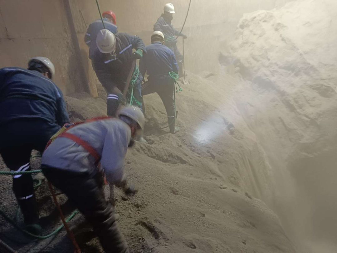 为做好矸石仓的安全清仓工作,事业部提前10天编制《充填站清理矸石仓安全技术措施》,并在“晨会”上进行传达学习。项目经理对“刷仓”前的准备、“刷仓”过程中的监督以及“刷仓”后的安全收尾工作做了详细的安排和部署,并派专人进行盯靠。