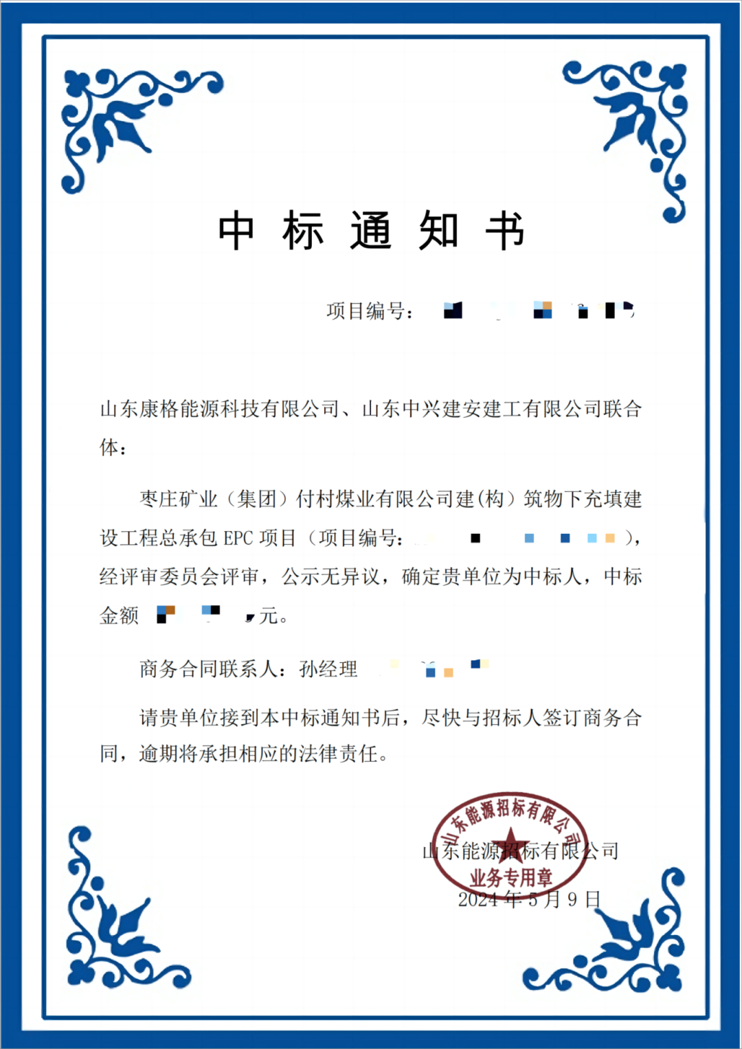 近日,康格公司以8800余万元的价格,成功中标枣庄矿业(集团)付村煤业有限公司建(构)筑物下充填建设工程总承包EPC项目(以下简称:付村充填项目),此项目为今年首个千万级特大型工程项目。