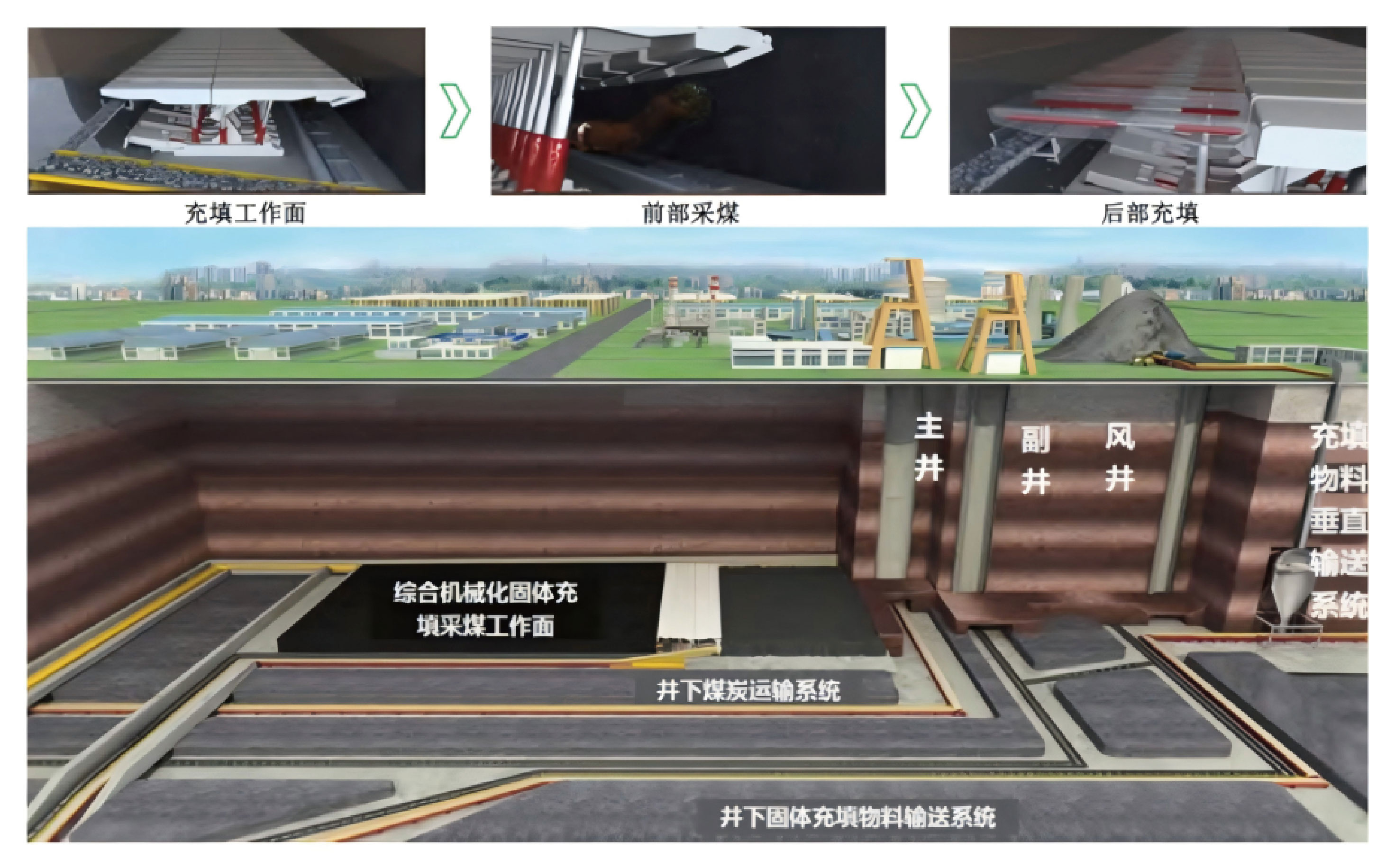 综合机械化原矸充填技术是在采煤工作面后方,利用特定的输送设备和充填支架,将矸石充入采空区并捣实,减少采空区上方岩层移动和变形,控制地表沉陷,同时实现矸石的井下处理,有效降低矸石排放量。